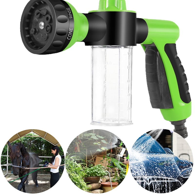 8 In 1 Spray Patterns: The foam gun has 8 types of spouts ,spin- click spray selector different settings ( rinse, stream, flat, center, jet, shower, mist and cone) which can spout water in 8 patterns for different uses, spray nozzle for garden hose fulfill your different needs. Best for Watering Plants, Lawn, Patio, and Washing Car, Showering Pets.